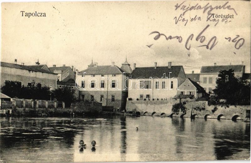 1907 Tapolca, tó, fürdőző gyerekek, Kardos Mór üzlete