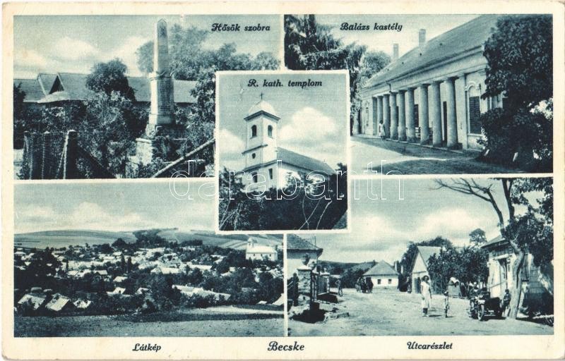 1933 Becske, Római katolikus templom, Hősök szobra, Balázs kastély, ut...