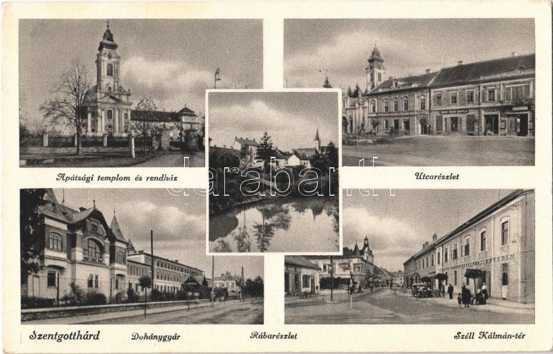 1942 Szentgotthárd, Apátsági templom és rendház, utcarészlet, dohánygyár, Rábarészlet, Széll Kálmán tér