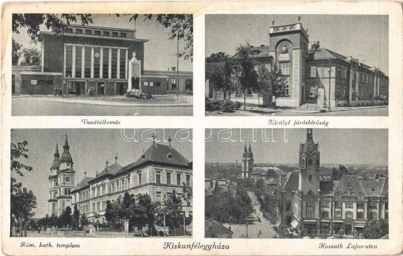 1943 Kiskunfélegyháza, vasútállomás, királyi járásbíróság, római katolikus templom, Kossuth Lajos utca