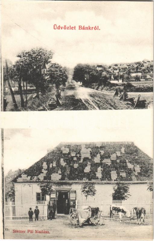 Bánk, látkép, utcakép, dohánytőzsde. Steiner Pál kiadása. Rembrandt fényirda 244.