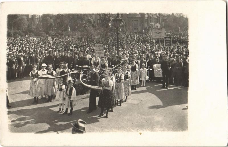 Description: Budapest XIV. Városliget, Washington szobor koszorúzása, irredenta gyűlés, "Erdélyi Sasok Testvériség Munkás-Szövetség", "Nem! Nem! Soha!" táblák. photo