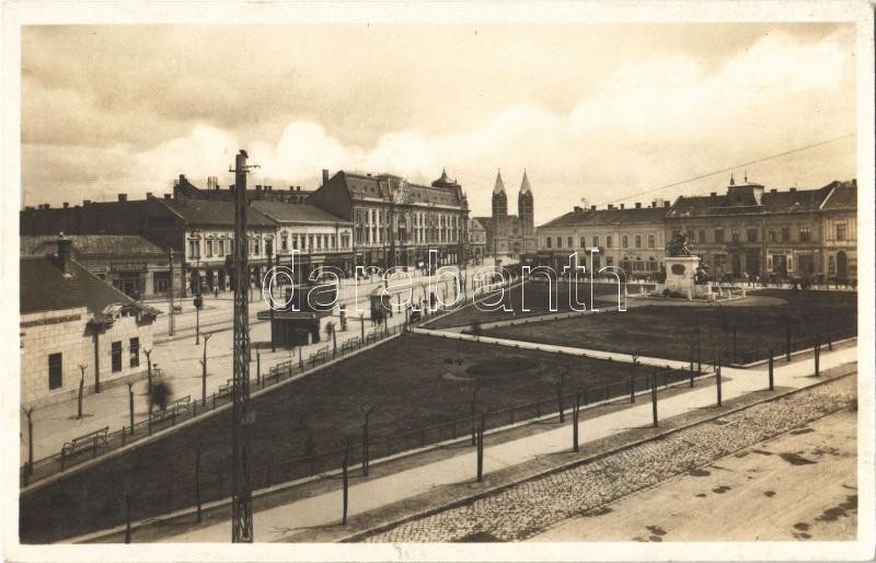 Nyíregyháza, látkép, Nagy István, Löffler, Wiener Adolf, Vajda Jenő, Kovács Gyula üzlete, Osgyáni József gyógyszertára, Nép Áruház, Nyíregyházavidéki Kisvasutak megállóhelye, villamos, vendéglő, étterem. Fábián Pál kiadása