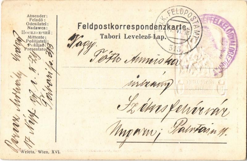 1916 Isonzo-Armee 1915 feliratú jelvény képe tábori postai levelezőlap...
