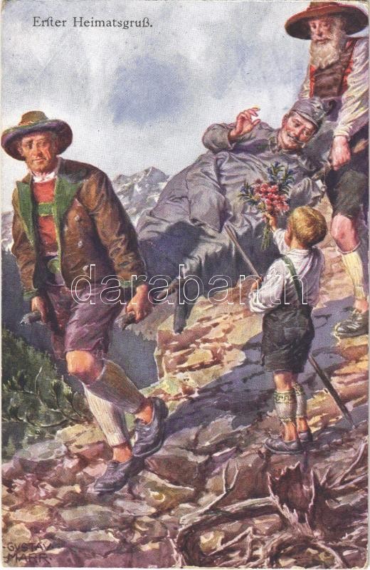 Erster Heimatsgruß / WWI Austro-Hungarian K.u.K. military art postcard. B.K.W.I. 259-163. s: Gustav Marr (EK)