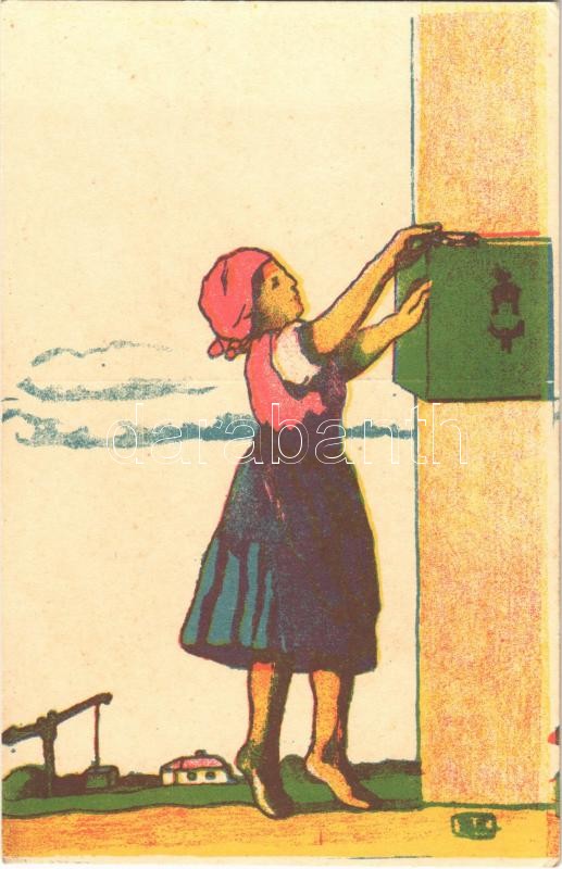 Magy. Kir. Posta Jóléti Csoportjának propaganda lapja a Postás Árvaház javára / Hungarian charity propaganda art postcard