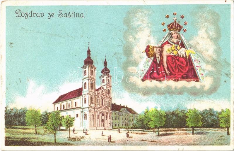 Sasvár, Sastín, Mária Sasvár, Maria-Schlossberg; Kegytemplom / church. litho (EK)
