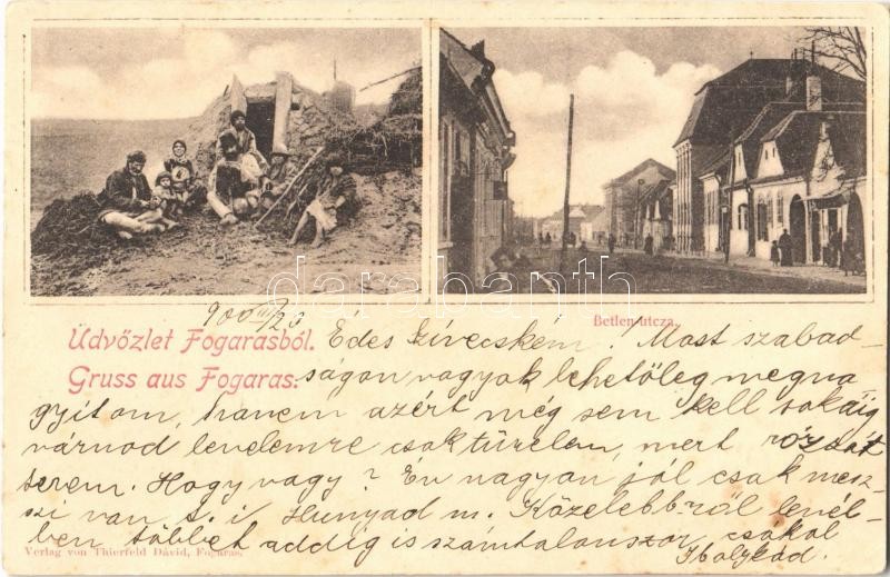 1900 Fogaras, Fagaras; cigány verem, Bethlen utca. Thierfeld Dávid kiadása / Gypsy folklore, stack, street view (fl)