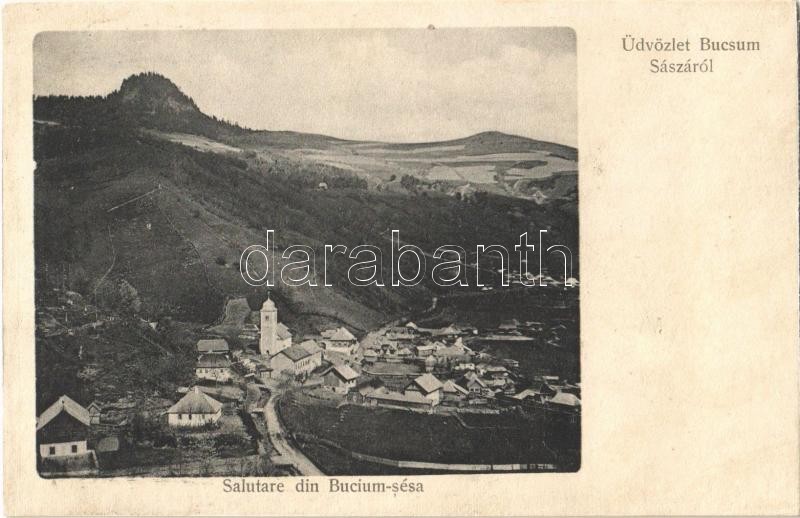 Bucsony, Bucium-sésa; (Bucsum) Bucsony-Sásza látképe templommal és Det...