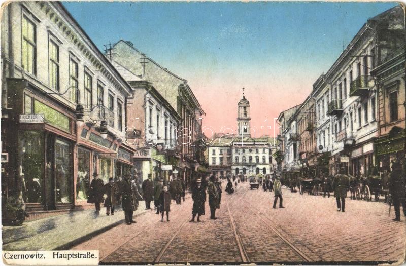 https://www.darabanth.com/en/363-Online-auction/363.0/Postcards/Ukraine~1500060/1915-Chernivtsi-Czernowitz-Cernauti-Csernyivci-HauptstraC39Fe-main-street-shop-of-Richter-Verl~II2098387
