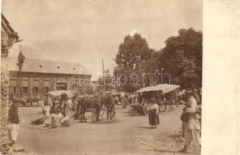 Újvidék, Novi Sad; Piaci árusok, vásár, Hirschl Dávid és fiai üzlete /...