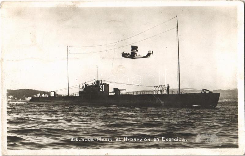 https://www.darabanth.com/en/363-Online-auction/363.0/Postcards/Warships~1500069/1938-Sous-Marin-et-Hydravion-en-Exercice-French-Navy-hydroplane-seaplane-submarine-S1~II2101058