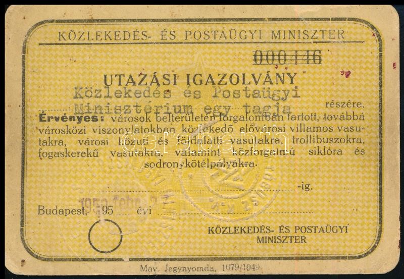 1950 Közlekedés- és Postaügyi Miniszter által kiállított utazási igaz...