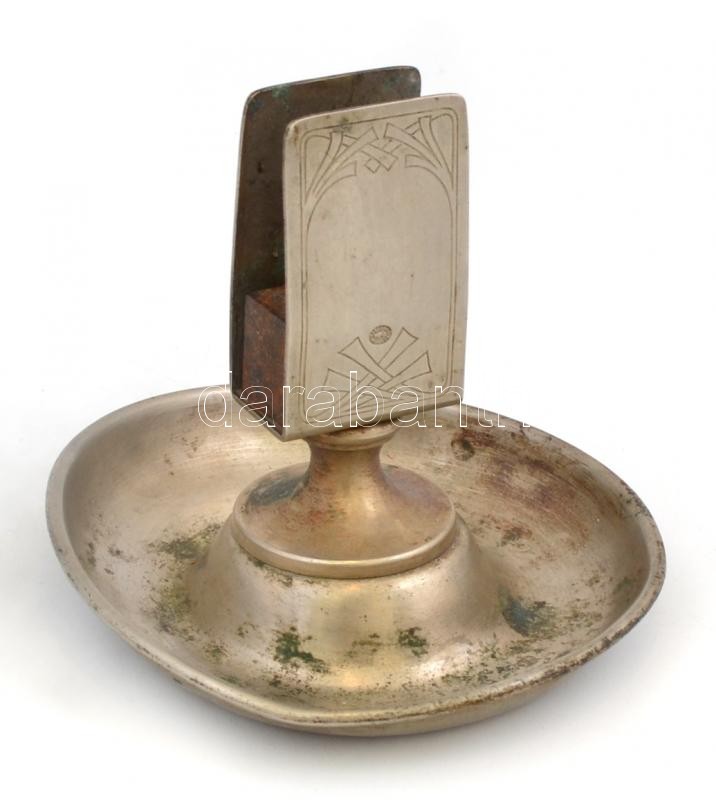 Szecessziós díszítésű Berndorf alapkka gyufatartó, jelzett, horpadt, m...