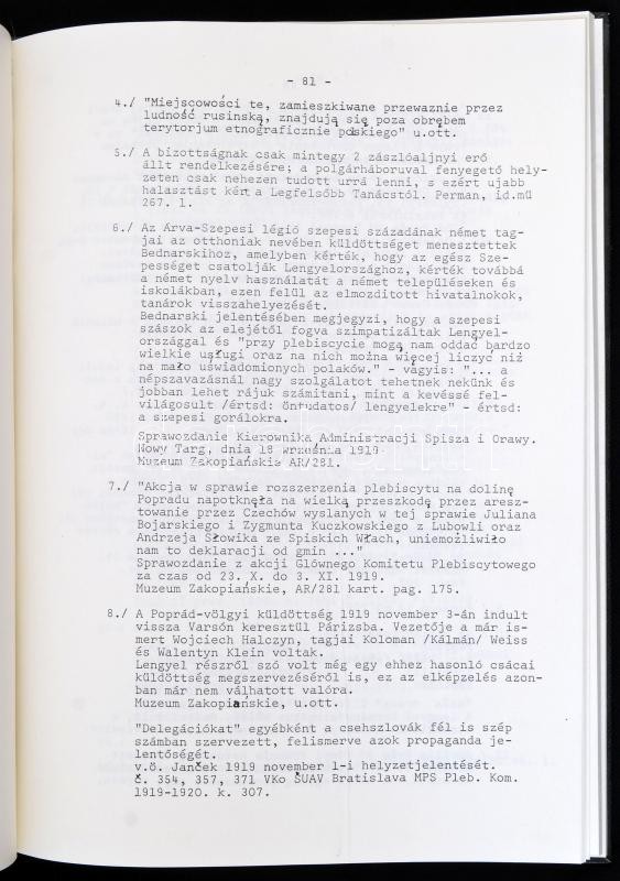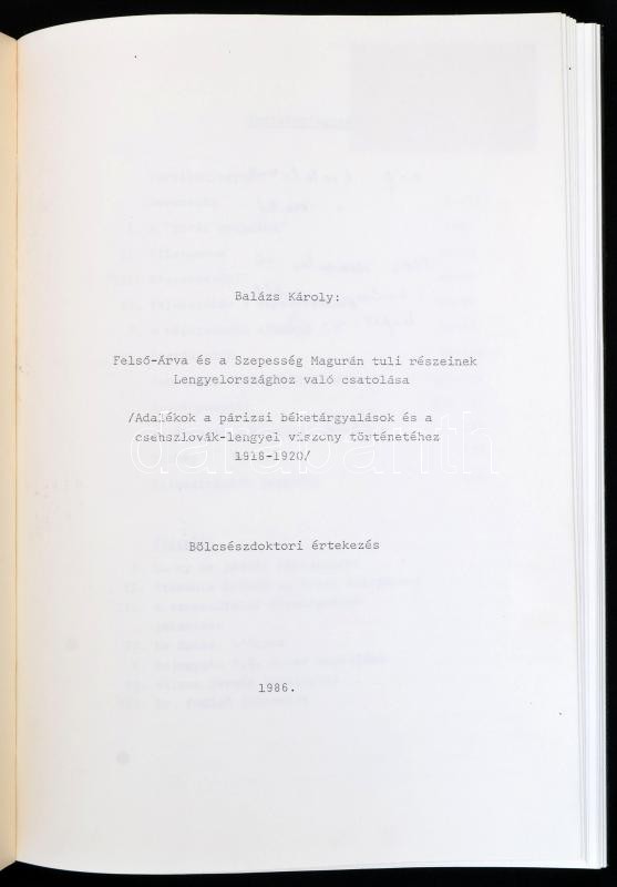 1986 Balázs Károly: Felső-Árva és a Szepesség Magurán túli részeinek Lengyelországhoz való csatolása