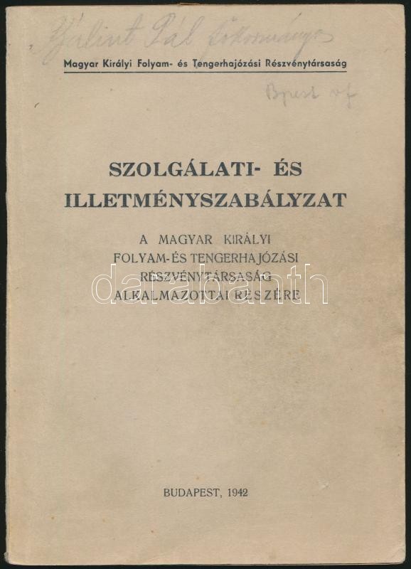 1942 Szolgálati és illetményszabályzat a M. Kir. Folyam- és Tengerhajózási Rt. alkalmazottai részére. Bp., 1942., "Élet". Kiadói papírkötés.