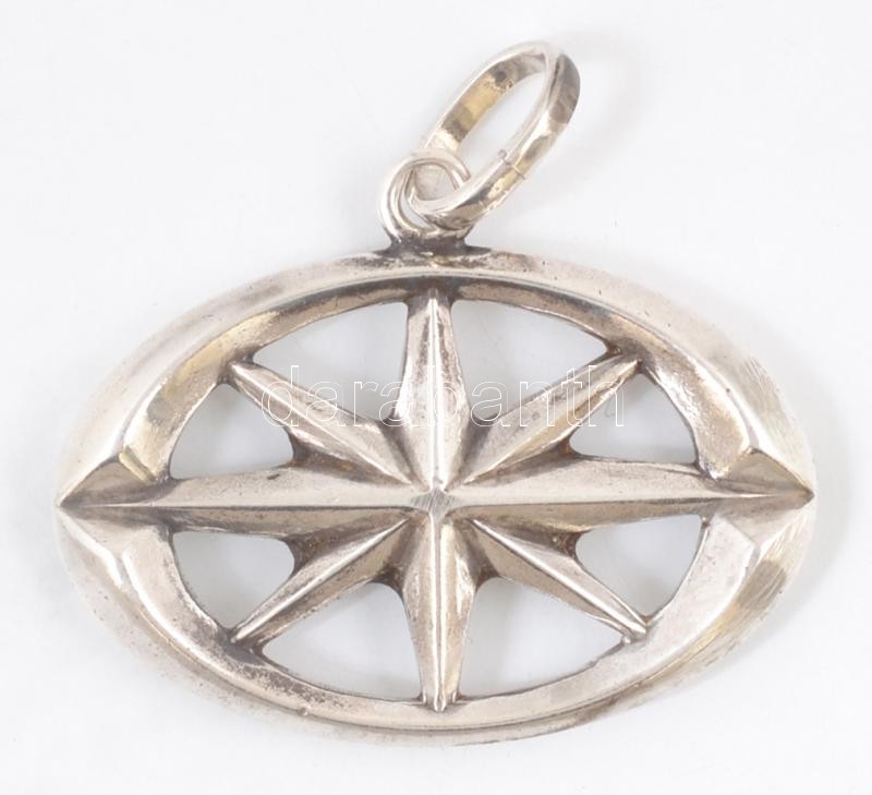Ezüst(Ag) csillagos medál, jelzés nélkül, 4×2,5 cm, nettó: 15,9 g