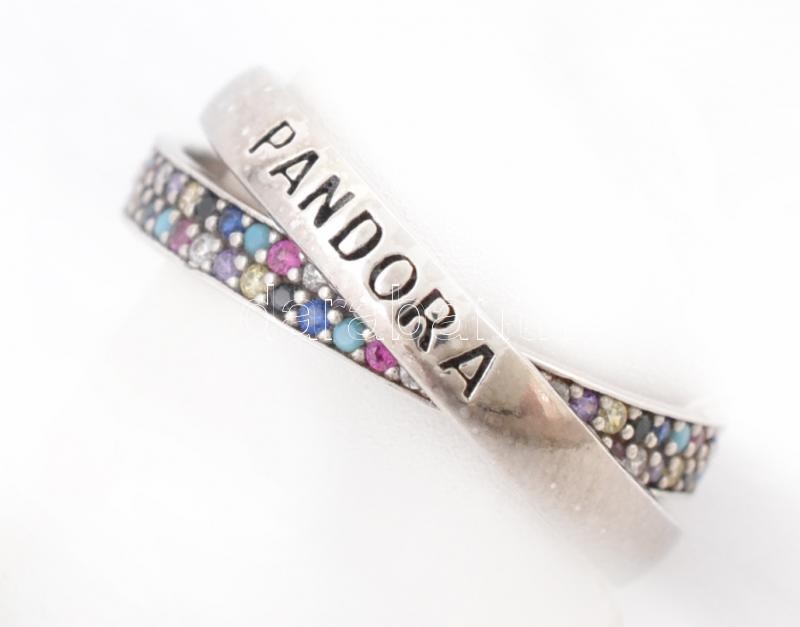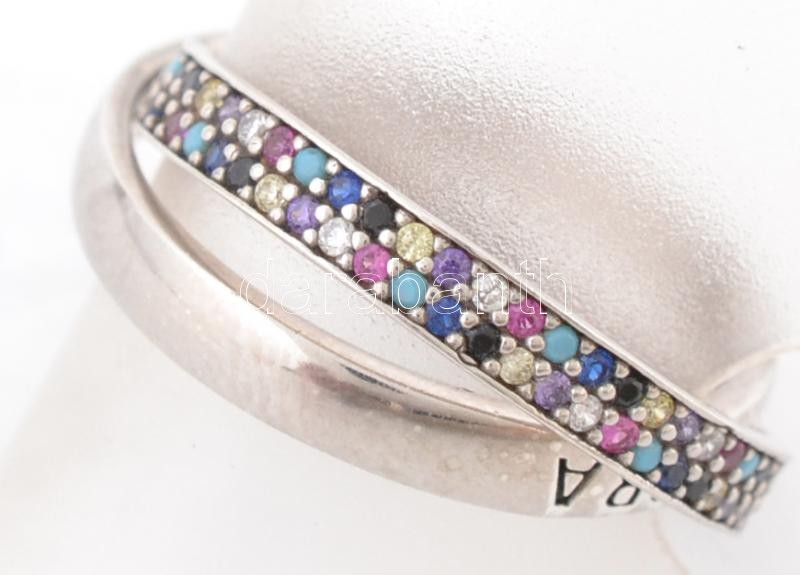 Ezüst(Ag) dupla gyűrű, apró színes kövekkel, Pandora jelzéssel, méret:...