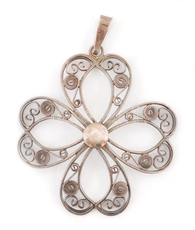 Ezüst(Ag) filigrán medál, jelzett, 4×4 cm, nettó: 4,9 g