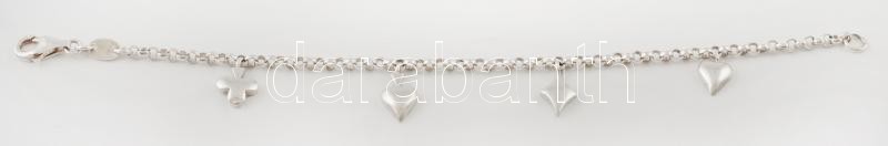 Ezüst(Ag) francia kártya szimbólumaival díszített karkötő, jelzett, h: 19 cm, nettó: 8,4 g