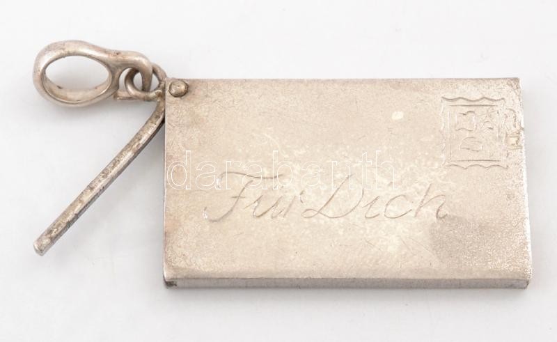 Ezüst(Ag) kinyitható levél medál, "Für Dich" felirattal, jelzés nélkül, 2×3 cm, nettó: 9 g