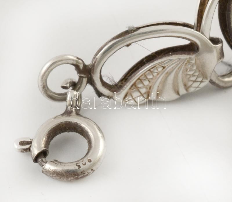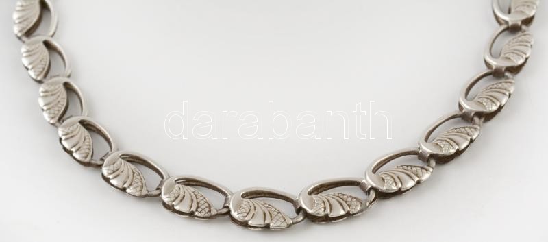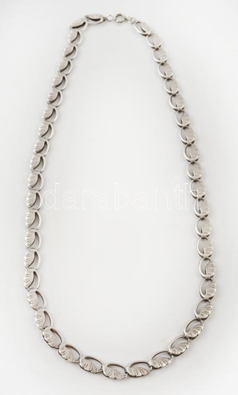 Ezüst(Ag) legyezőmintás, oválszemes nyaklánc, jelzett, h: 45 cm, nettó...
