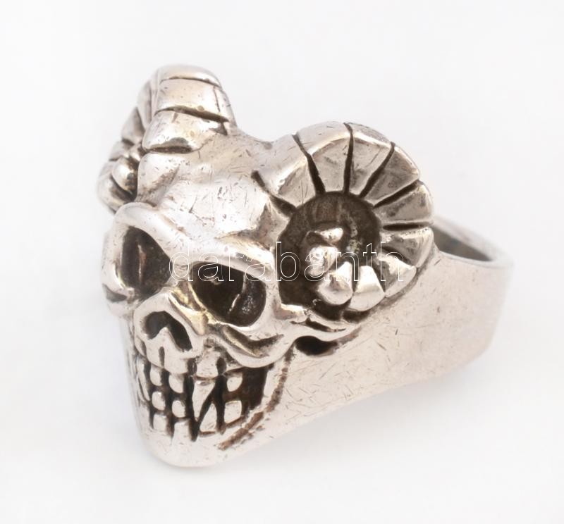 Ezüst(Ag) masszív halálfejes gyűrű, jelzett, méret: 68, nettó: 24,4 g