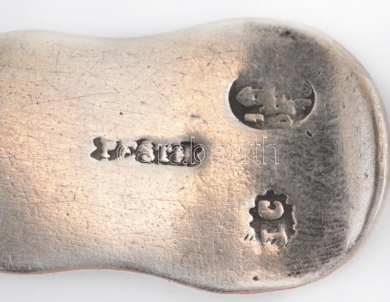 Ezüst(Ag) nagy kanál, hajlított szárral + teáskanál, jelzett, nettó: 1...