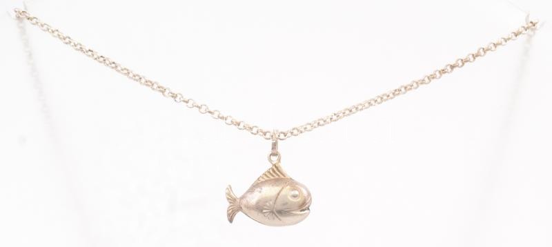 Ezüst(Ag) nyaklánc, halas medállal, jelzett, h: 42 cm, nettó: 6,9 g