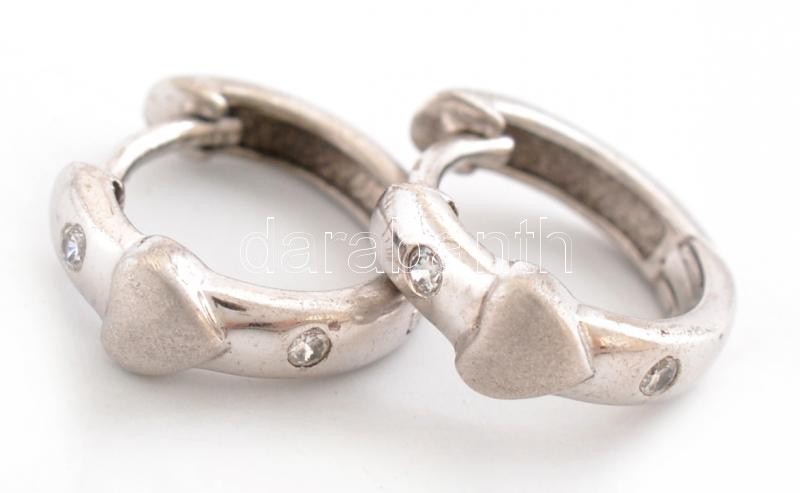 Ezüst(Ag) szívecskés karikafülbevaló-pár, jelzett, d: 1,2 cm, bruttó: ...