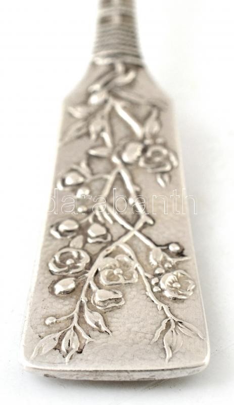 Ezüst(Ag) virágmintás címeres kanál, jelzett, h: 11,2 cm, nettó: 11,6 ...