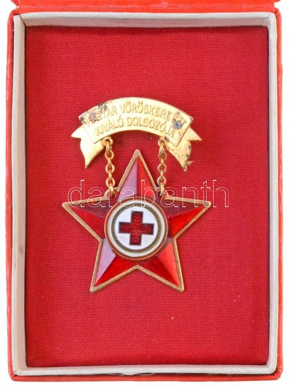 ~1970-1980. "Magyar Vöröskereszt Kiváló Dolgozója" zománcozott, aranyozott kitüntetés tokban T:2 kis patina