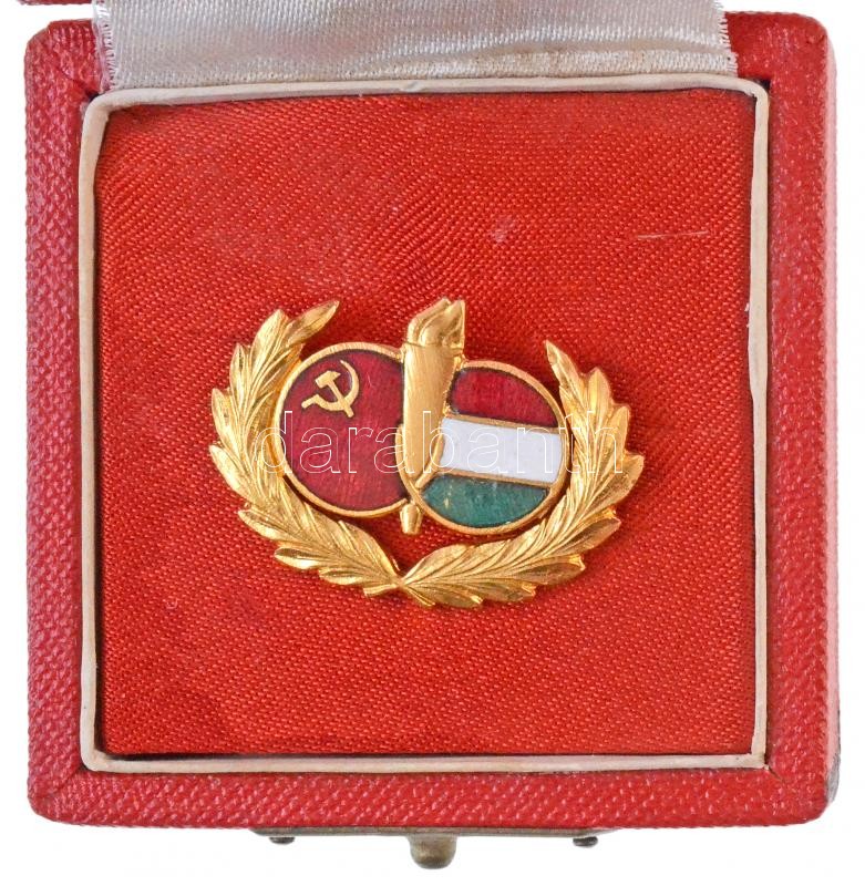 ~1970. "Magyar-Szovjet Baráti Társaság" zománcozott, aranyozott jelvény, eredeti tokban (28x20mm) T:1-