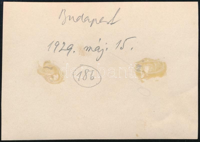Description: 1929. május 15. Kinszki Imre (1901-1945) budapesti fotóművész hagyatékából jelzés nélküli, de a szerző által feliratozott, vintage fotó (Ez a szerző 186. számozott felvétele), 5,8x8,2 cm