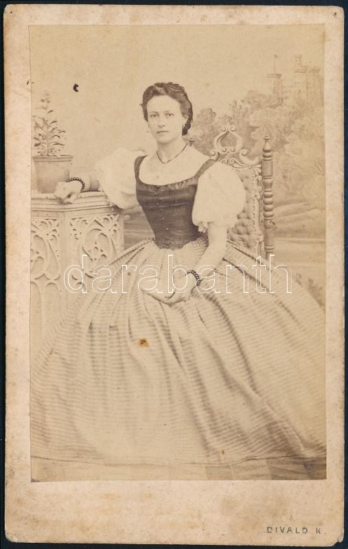 cca 1860 Hölgy műtermi portréja, keméynhátú fotó Divald Károly műtermé...