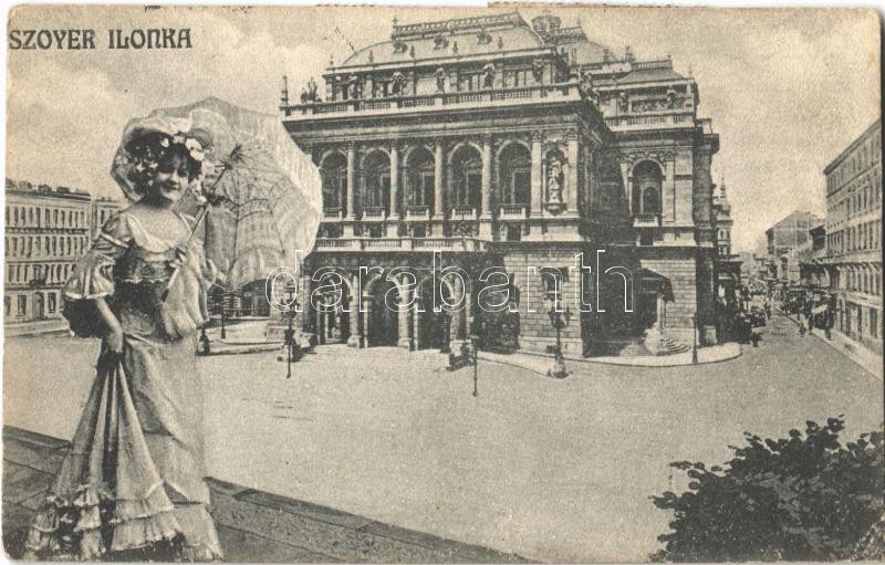1913 Szoyer Ilonka a budapesti Operaház előtt. montázs (EK)