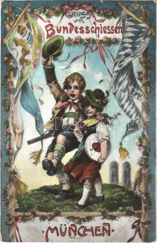 1906 Gruss vom Bundesschiessen München / German Federal Shooting, Heli...