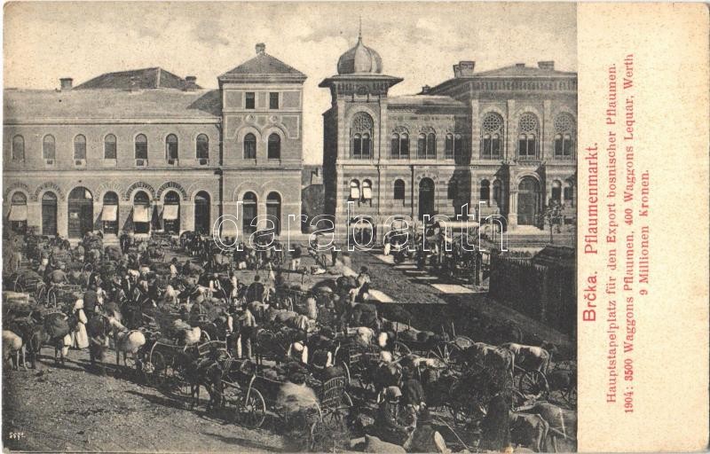 Brcko, Pflaumenmarkt, Hauptstapelplatz für den Export bosnischer Pflaumen / plum market, vendors, shop of Zeitler (fl)