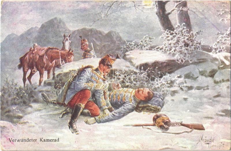 1915 Verwundeter Kamerad / WWI Austro-Hungarian K.u.K. military, injured soldier. B.K.W.I. 259-84. s: Kränzle (EK)