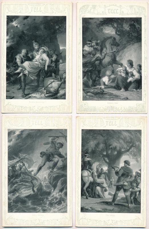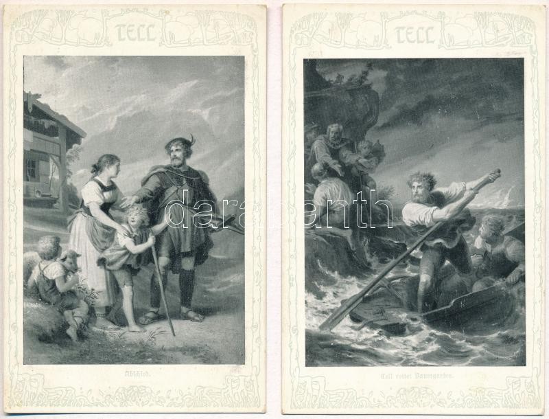 Tell Vilmos - 6 db használatlan régi művész képeslap sorozatból / William Tell - 6 pre-1945 unused art postcards from a series. T.S.N. Serie 467.