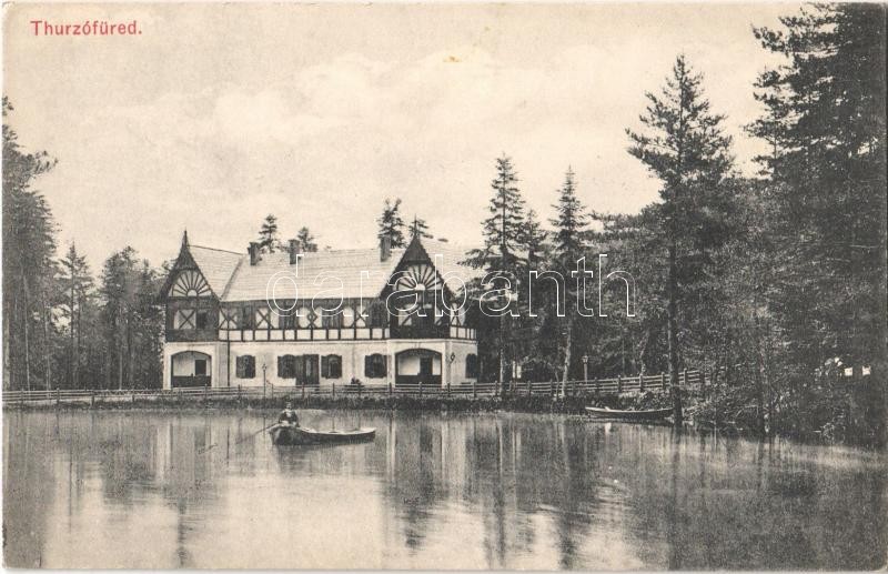 Thurzófüred, Kúpele Thurzov, Turzovské kúpele (Gölnicbánya, Gelnica); Thurzóház nyaraló, csónak. Feitzinger Ede No. 734. / villa, boat