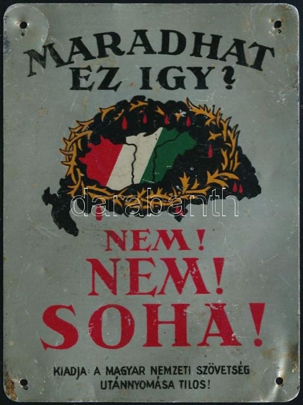 cca 1925 "Maradhat ez így? Nem! Nem! Soha!" irredenta fém lemez, 8×6 c...