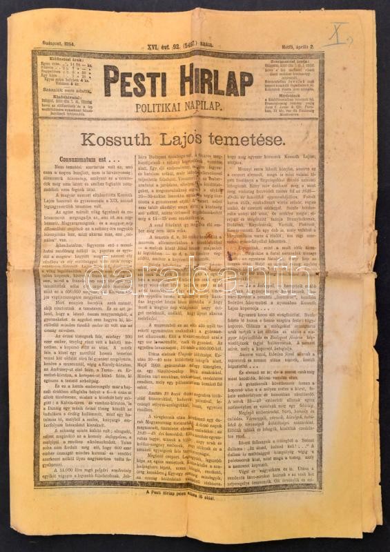 https://www.darabanth.com/en/365-Online-auction/365.0/Art-and-other-collectibles/Printed-Materials~500028/1894-aprilis-2-A-Pesti-Hirlap-Kossuth-Lajos-temeteserol-beszamolo-szama-Serult~II2112248