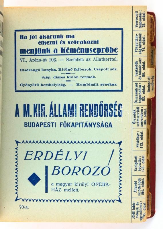1929 Rendőrségi zsebkönyv. Budapesti útmutató és címtár 1929. IX. évf....
