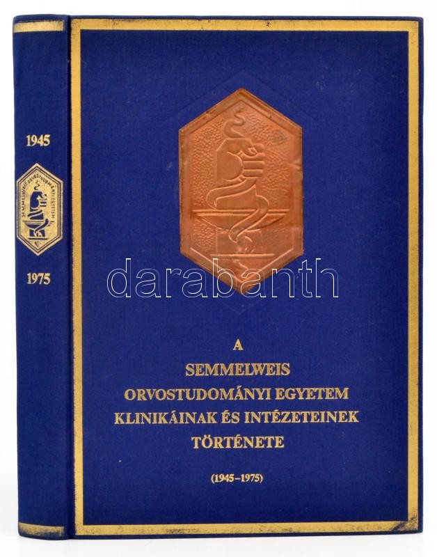 Description: Dr. Székely Sándor (szerk.): A Semmelweis Orvostudományi Egyetem klinikáinak és intézeteinek története (1945-1975) Bp., 1976, Semmelweis Orvostudományi Egyetem. Kiadói egészvászon kötésben, fém plakettel