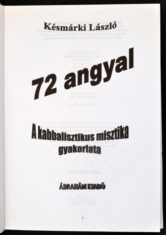 2 db - Késmárki László: 72 angyal. A kabbalisztikus misztika gyakorlat... https://www.darabanth.com/en/365-Online-auction/365.0/Books/Books-Other-rarities~1000022/2-db-Kesmarki-Laszlo-72-angyal-A-kabbalisztikus-misztika-gyakorlata-2006-Abraham-Kiado~II2115820