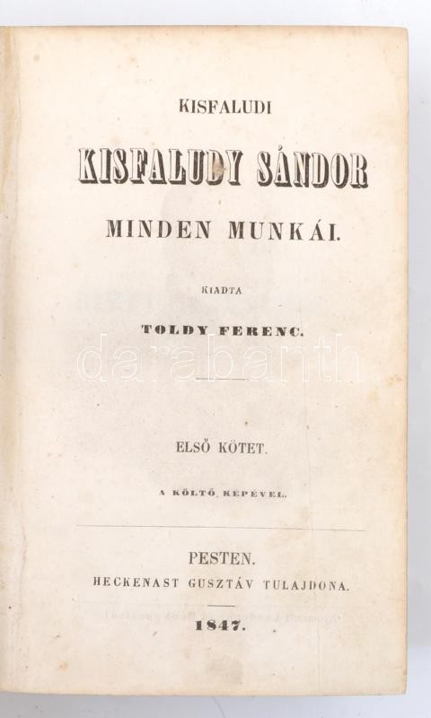 Kisfaludi Kisfaludy Sándor minden munkái. Kiadta: Toldy Ferenc. I. köt... https://www.darabanth.com/en/365-Online-auction/365.0/Books/Books-Other-rarities~1000022/Kisfaludi-Kisfaludy-Sandor-minden-munkai-Kiadta-Toldy-Ferenc-I-kotet-A-kolto-kepevel-pe~II2115133