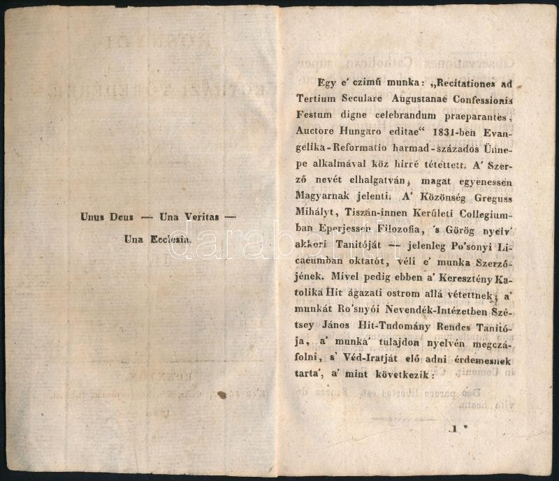Rosnyói egyházi töredékek I.II. Rozsnyó, 1834. Kek József. 55+55p. Tör...