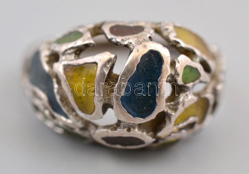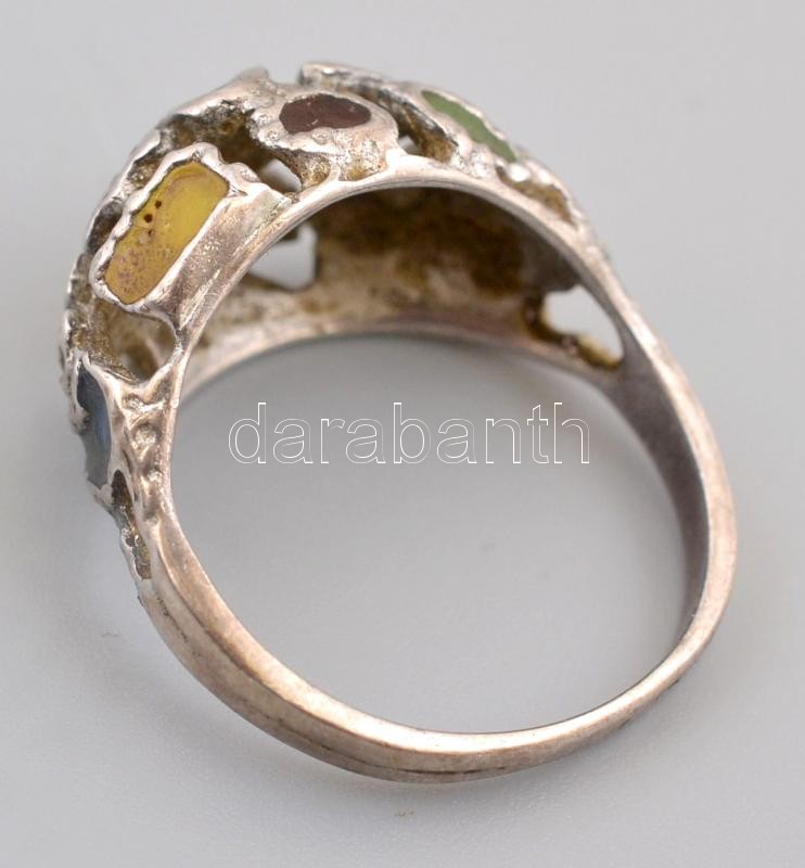 Ezüst (Ag) gyűrű zománc díszítéssel, jelzett, méret: 56 bruttó: 4,5 g