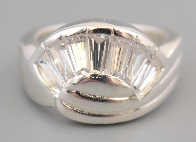 Ezüst(Ag) extravagáns köves gyűrű, jelzett, méret: 52, bruttó: 6,8 g